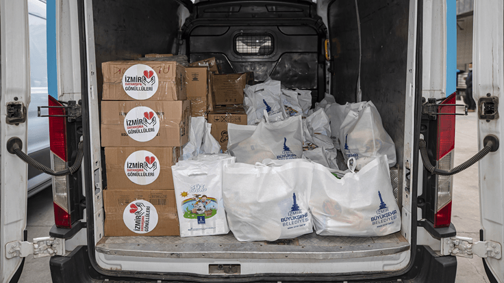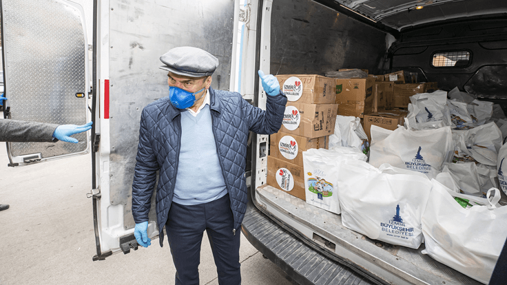 İzmir Büyükşehir Belediye Başkanı Tunç Soyer’in koronavirüs krizi nedeniyle başlattığı dayanışma kampanyasında hiç geliri olmayan 65 yaş üstündekilere yönelik gıda, hijyen malzemesi dağıtımı sürüyor.