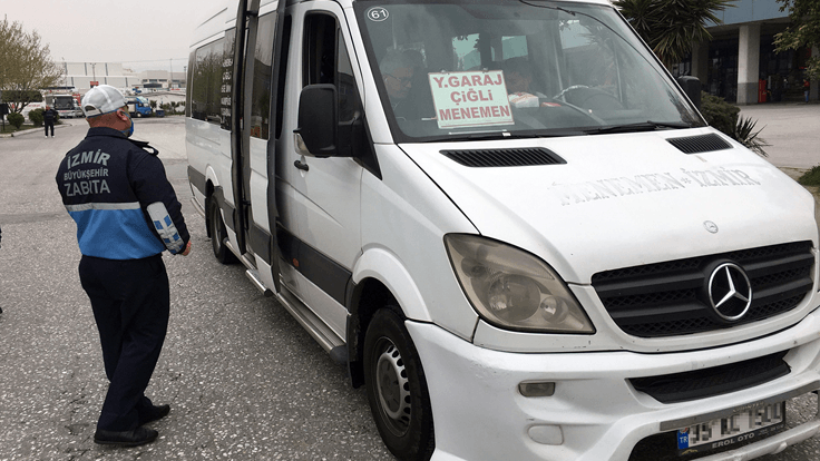 İzmir Büyükşehir Belediyesi yeni koronavirüs salgınına karşı şehirlerarası otogardaki otobüsleri ve minibüsleri denetledi. İçişleri Bakanlığı salgınla mücadele kapsamında bir genelge yayımlayarak, şehiriçi ve şehirlerarası çalışan toplu taşıma araçlarının kapasitelerinin yüzde 50’sinden fazla yolcu almasını yasaklamıştı.