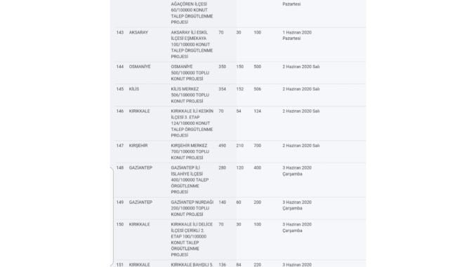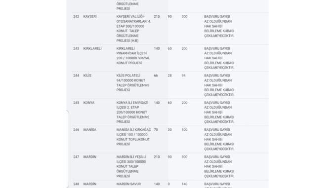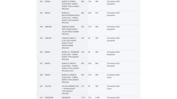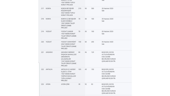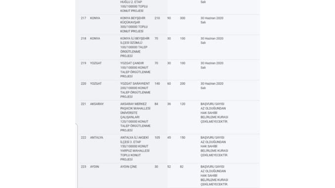 TOKİ Konutları İl İl Kura Çekiliş Tarihleri Listesi