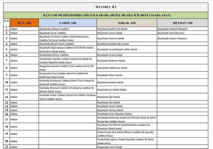 İstanbul genelinde sigara yasağı getirilen sokak, cadde ve meydanların tam listesi Valiliğimiz internet sitesinde yayınlanmıştır. Yasağa uymayanlar için 900 TL para cezası uygulanacaktır.”