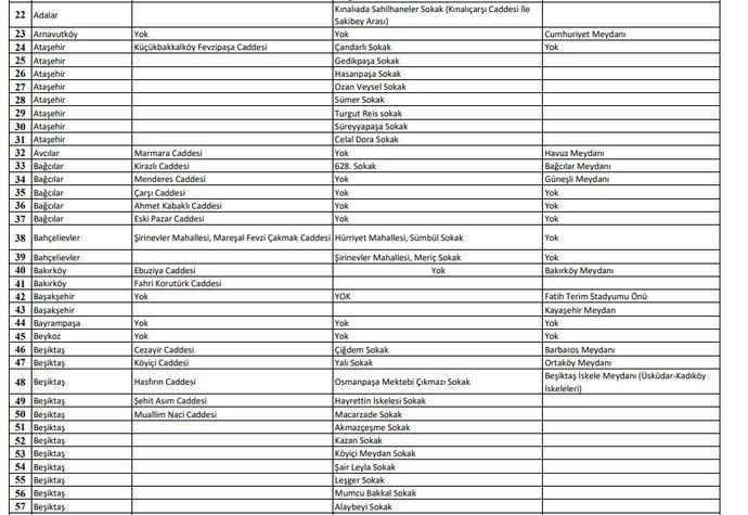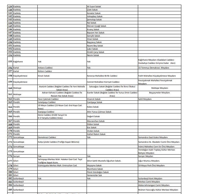 İstanbul genelinde maske kullanımının doğru şekilde uygulanması amacıyla 125 sokak, 93 cadde, 84 meydan ve toplu taşıma araç duraklarında sigara içilmesi yasaklanmıştır.