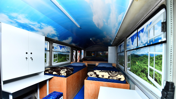 ESHOT Genel Müdürlüğü, depremin hemen ardından sahada çalışan arama kurtarma ekiplerinin dinlenebilmesi için hizmete sunduğu otobüslerin gerekli konforu sağlamaması üzerine mobil barınma aracı projesi üzerinde çalıştı. Proje kapsamında filodaki 2001 model Mercedes marka körüklü otobüslerden biri, ESHOT atölyelerinde kurumun kendi kaynaklarıyla mobil yatakhaneye çevrildi. Koltuklar, döşemeler, tutamaklar söküldü. Araca yataklar, yumuşak oturaklar, masalar ve ısıtıcılar yerleştirildi. Yere halı serildi. İç ve dış yüzeyler, camlar ve tavanlar dekoratif görsellerle kaplandı. Aracın motoru ve yürüyen aksamı da yenilendi.