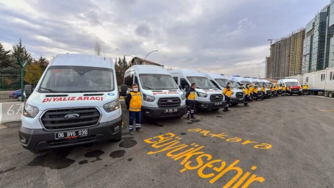 Ankara Büyükşehir Belediyesi, Başkentlilere sağlık alanında daha hızlı hizmet vermek için çalışmalarını sürdürüyor. Sağlık İşleri Daire Başkanlığı hasta, doğum yapan, yatalak ya da diyaliz hastalarına hizmet veren hasta nakil ve diyaliz araç filosunu genişletti. Yeni alınan 6 hasta nakil ve 4 diyaliz aracı ile birlikte hasta nakil araç sayısı 20’ye, diyaliz araç sayısı ise 12’ye yükseldi.