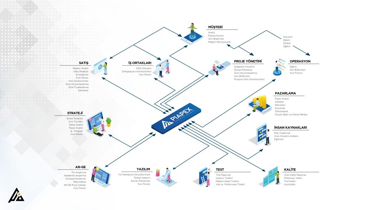 “Ürün yönetiminin kompleks yapısından dolayı çoğu zaman bu yeteneklere sahip ürün yöneticilerinin bulunmaya çalışılması şirketler için zaman kaybı ve yüksek maliyete sebep oluyor. Ürün yönetiminin yapılmadığı firmalarda ürün kapsamı, müşteri görüşmeleri ve ürün dokümanlarının oluşturulması teknik ekipler tarafından yapılıyor. Bu durum mesaisi artan çalışanlar, zaman ve kaynakların verimsiz kullanılması, müşteri memnuniyetsizliği gibi sorunları da beraberinde getiriyor. PIAPEX olarak, teknik ekiplerin geliştirme ve üretim ortamına yoğunlaşmalarına imkân sağlıyoruz. Ürün dünyasında; ürünün zaman planlaması, ürünün fiyat ve iş modelinin belirlenmesi, pazara doğru zamanda çıkması ve hedefe yönelmesi, marka yönetiminin yapılması, müşteri ve satış ekiplerine ürün hakkında vizyon ve gelecek bilgilerinin verilmesi, müşteriden geri bildirimlerin toplanması ve ürünün yol haritasında güncellemelerin yapılması gibi karmaşık bir denklem söz konusu oluyor.